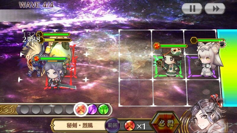 火力担当のギザザヤに、超強力なwaveバフをもつシャロロラ、回復役のメルルダ、強力な後衛のキララネのパーティーにしました!