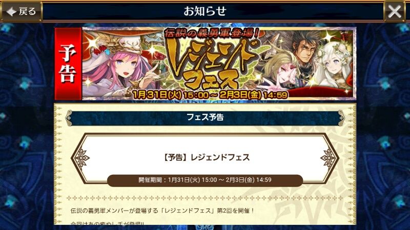 今回のレジェンドフェスのキャラはこちら!!