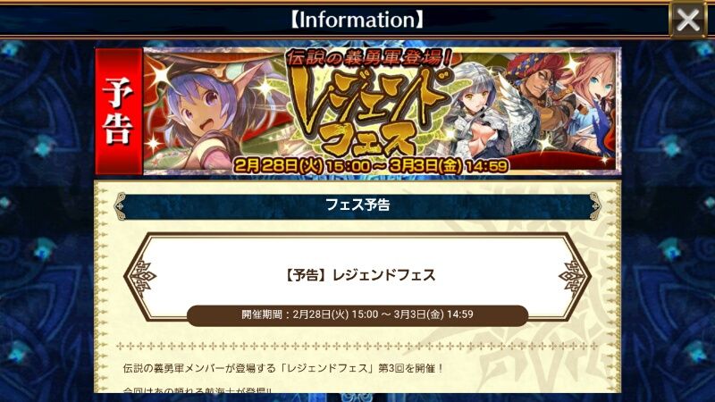 今回のレジェンドフェスのキャラはこちら!!