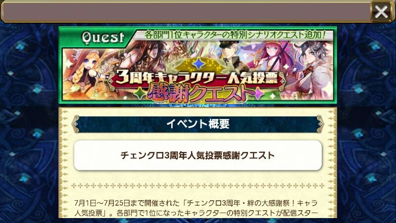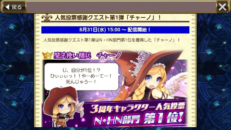 三周年人気投票キャラクエが来ましたね(ノ≧∀≦)ノ