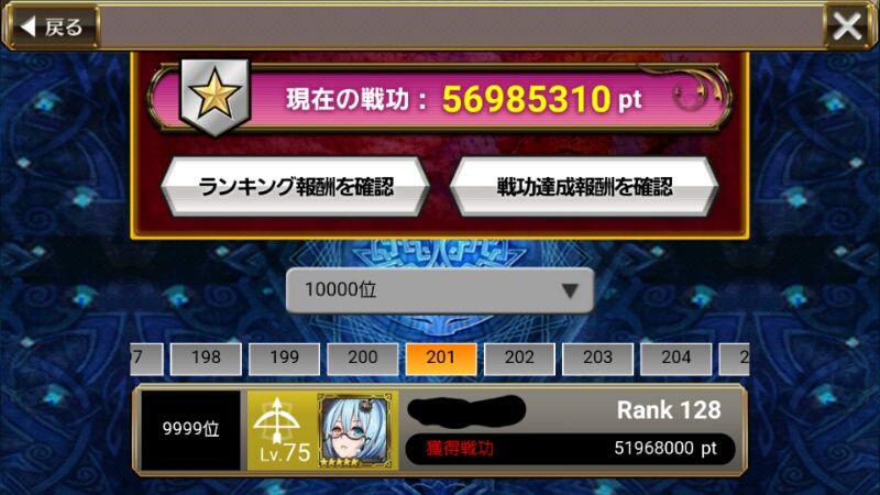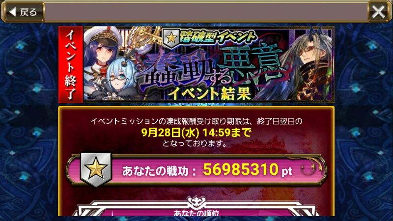 今回の結果は、戦功ポイントが5600万ptまで行きましたよ( ≧∀≦)ノ