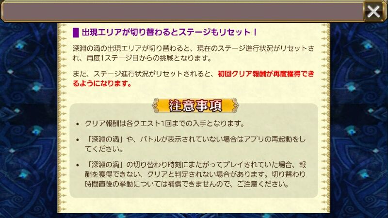 チャレンジ権が合計で25コ、各深淵の渦の初回クリア報酬が11回×2の22回なので、まずは両方の初回クリア報酬をGETするのが、効率的でしょうか??