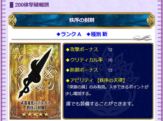200体撃破で、深淵の渦のポイントアップのアビリティがついた武器がてに入りますよ☆