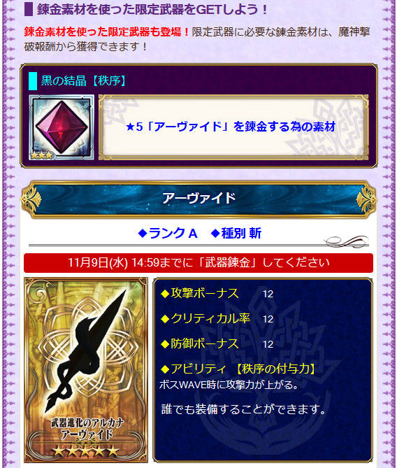 また、黒の結晶を集めるとアビリティ付きのアーヴァイドが錬成出来ますよ♪