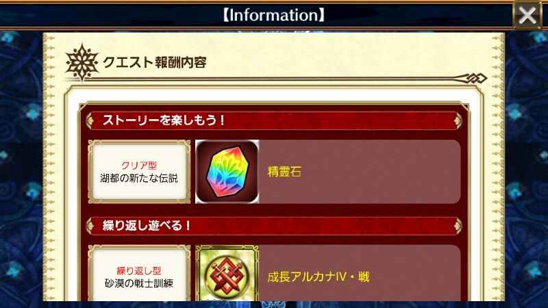 ストーリークエストでは、精霊石がもらえますよヽ(*´∀`*)ノ